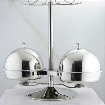 Plato de frotamiento doble con soporte Hotel Buffet Food Top Plato de frotamiento redondo para fiesta